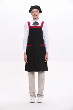 • 餐廳廚師圍裙掛脖黑色長袖酒店工作服定做中